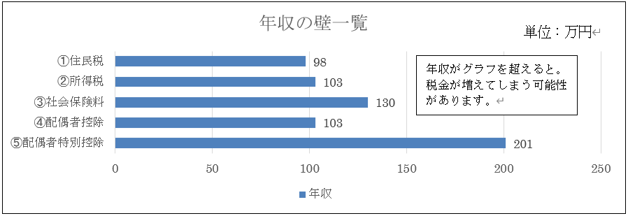 ➃ 201万円の壁 :「所得税」における配偶者特別控除から外れる